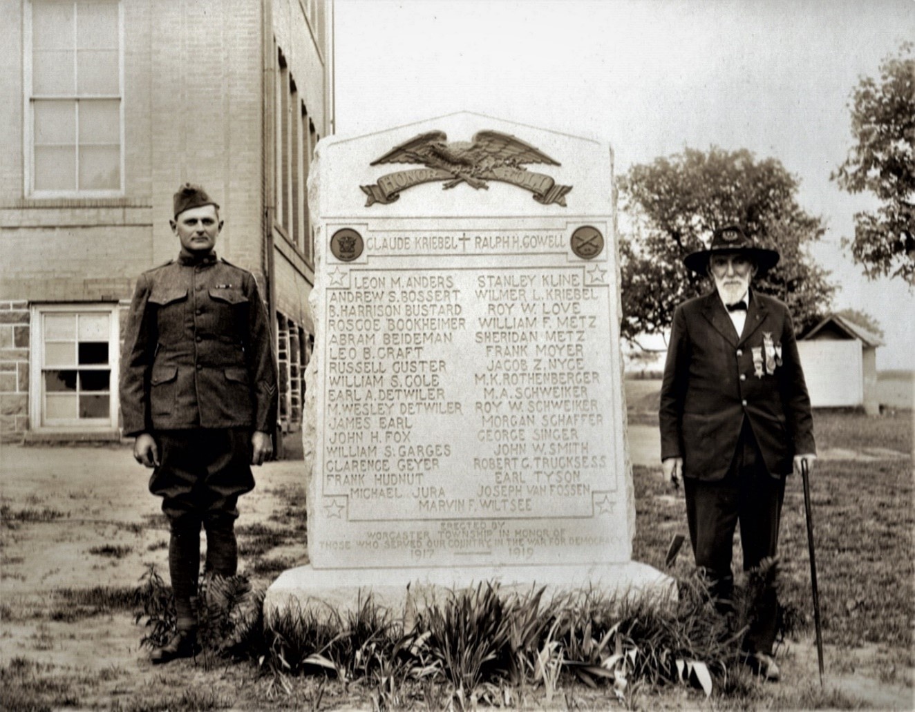The WWI monument was designed and approved in August, 1919 by a select committee of Worcester residents.