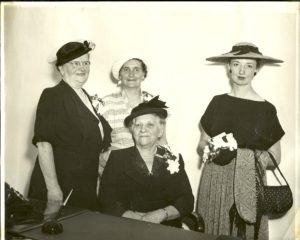 Members of the Ladies’ Aid Society who participated in the program given by the women of the church on June 11, 1951, during the week of dedication of the Central Schwenkfelder Church: seated, Mrs. LS Hoffman, wife of the Minister of the church; standing, left to right, Mrs. HB Shearer, President of the Ladies’ Aid Society; Mrs. Earl W Heebner, Vice President; and Miss Marjorie Penney, Director of Fellowship House, Inc., Philadelphia, guest speaker.