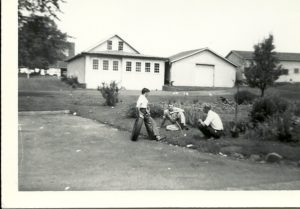 Lester Landes, Kenneth Brunt, Harold Allebach – truck patch behind Allebach’s store Donated by Newell AllebachLester Landes, Kenneth Brunt, Harold Allebach – truck patch behind Allebach’s store Donated by Newell Allebach